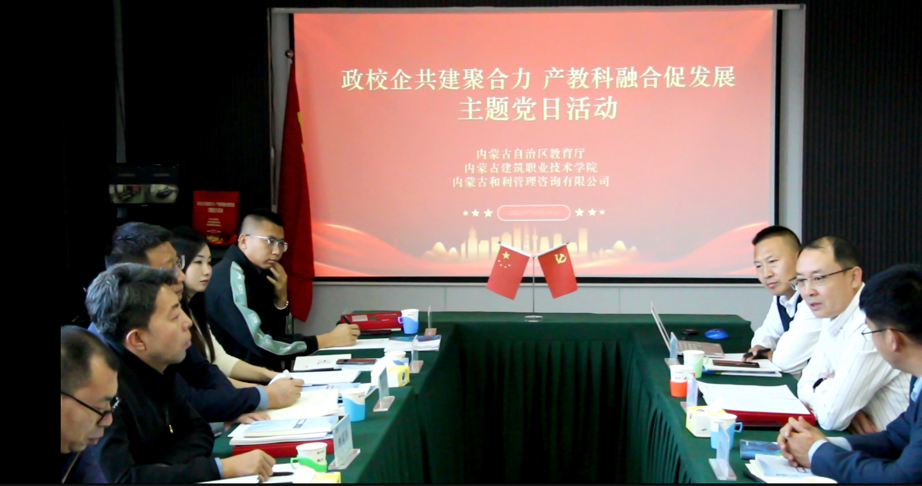 為深入學習貫徹習近平新時代中國特色社會主義思想主題教育,充分發(fā)揮黨建聯(lián)建的互融互促作用,深化政校企合作,實現(xiàn)共贏發(fā)展。10月19日,內(nèi)蒙古和利管理咨詢集團有限公司(以下簡稱“和利集團”)聯(lián)合教育廳職成處黨支部、內(nèi)蒙古建筑職業(yè)技術學院教務處黨支部、和利黨支部開展“政校企共建聚合力 產(chǎn)教科融合促發(fā)展”主題黨日活動。
