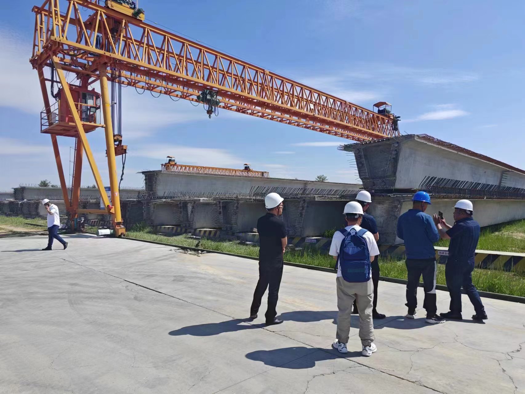 在智慧梁場內(nèi),張總向大家介紹了內(nèi)蒙古路橋集團(tuán)的發(fā)展歷程,并帶大家實地觀摩了制梁工藝、鋼筋加工過程、現(xiàn)場智慧勞務(wù)以及智慧安全的應(yīng)用情況,在物料驗收區(qū),張總還向大家介紹了項目上使用的廣聯(lián)達(dá)智慧物料驗收系統(tǒng)和現(xiàn)場的地磅、攝像頭等硬件進(jìn)行聯(lián)動,對項目進(jìn)出場物料進(jìn)行管控的操作過程。