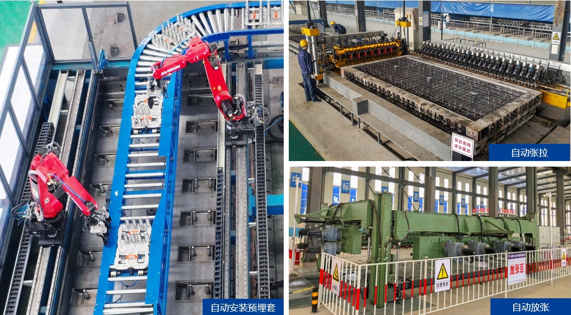為高質(zhì)量高效率生產(chǎn)軌道交通用混凝土構(gòu)件,致力于自動(dòng)化、智能化生產(chǎn),銀龍采用自主研發(fā)和與諸多科研院所合作模式,相繼研發(fā)成功高鐵軌道板自動(dòng)化生產(chǎn)線(xiàn)、軌枕自動(dòng)化生產(chǎn)線(xiàn)、盾構(gòu)管片自動(dòng)化生產(chǎn)線(xiàn)、重載運(yùn)輸AGV、軌道板3D檢測(cè)系統(tǒng)、自動(dòng)清理模具、自動(dòng)噴灑脫模劑、自動(dòng)安裝預(yù)埋套管、自動(dòng)張拉、自動(dòng)養(yǎng)護(hù)、自動(dòng)放張等自動(dòng)化、信息化裝備。在保障銀龍自身軌道混凝土構(gòu)件產(chǎn)業(yè)發(fā)展同時(shí),并向國(guó)內(nèi)外供應(yīng)整套生產(chǎn)線(xiàn)和裝備。