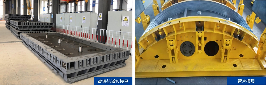 精密鋼膜是保證高鐵軌道板、軌枕、隧道管片、風(fēng)電混塔塔片、裝配式建筑構(gòu)件等混凝土預(yù)制件各部位尺寸和形位精度的關(guān)鍵裝備。銀龍組建集研發(fā)設(shè)計(jì)、生產(chǎn)制造和安裝服務(wù)為一體的技術(shù)團(tuán)隊(duì),建設(shè)大型機(jī)加工車(chē)間、組焊車(chē)間、組裝車(chē)間,配置數(shù)控激光切割機(jī)、數(shù)控車(chē)床、數(shù)控加工中心等數(shù)十套高精裝備,用于生產(chǎn)軌道板、軌枕、管片等精密模具,加工精度可達(dá)0.01mm,已向國(guó)內(nèi)外多家預(yù)制構(gòu)件廠提供了數(shù)千套高精模具。